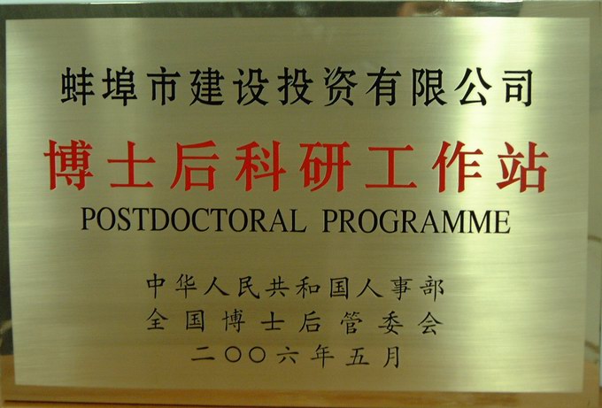最近,國家人事部以國人部發(fā)[2006]53號文批準(zhǔn)蚌埠市建設(shè)投資有限公司等省內(nèi)8家單位設(shè)立博士后科研工作站。博士后科研工作站的設(shè)立,為公司科研開發(fā)和經(jīng)營管理引進高層次人才開辟了新的渠道?! ∧壳?,公司正按照有關(guān)文件要求,結(jié)合公司實際,制定切實可行的博士后工作管理細則,規(guī)范工作程序,逐步建立完善博士后工作管理制度,并抓緊與全國已設(shè)立博士后科研流動站的高校、科研院所聯(lián)系,盡早確定聯(lián)合招收單位,研究確立高水平的博士后研究項目。博士后工作站建站事宜也正在緊張籌備之中。