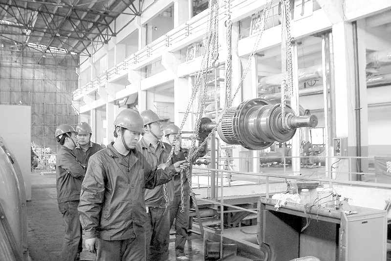 夏季用電高峰來(lái)臨之際,安徽新源熱電廠(chǎng)認(rèn)真做好設(shè)備、機(jī)組檢修工作,做好事故預(yù)想和事故預(yù)案,全力以赴打好“迎峰度夏”攻堅(jiān)戰(zhàn)。圖為技術(shù)人員檢修發(fā)電勵(lì)磁機(jī)轉(zhuǎn)子。 記者 柴光宇 通訊員 蒯平 蘇紅兵 攝