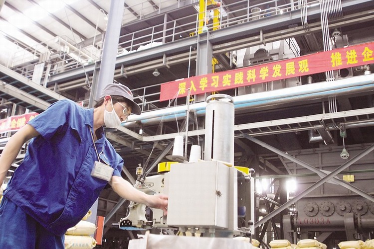 日前,筆者來到安徽天潤化學工業(yè)股份有限公司,廠房里一片火熱景象,工人們正在各自的崗位上忙碌著,面對供不應(yīng)求的需求量,天潤化工開足馬力進行生產(chǎn)。今年以來,天潤公司產(chǎn)銷量開始逐月上升,主導(dǎo)產(chǎn)品聚丙烯酰胺前4個月創(chuàng)產(chǎn)量和銷量8000多噸的歷史紀錄,5月份形勢也是一片大好,僅前10天就生產(chǎn)了聚丙烯酰胺1010噸,銷售900噸,企業(yè)生產(chǎn)量和銷售量屢屢創(chuàng)新高。
