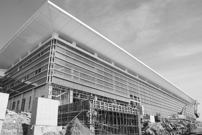 4月13日,京滬高鐵蚌埠南站站房外立面玻璃幕墻安裝基本完成,施工人員正在進(jìn)行出站口施工。據(jù)了解,京滬高鐵蚌埠南站站房設(shè)計容量1500人,是京滬高鐵省內(nèi)最大站房,項目全部建成后將成為京滬高鐵上的標(biāo)志性建筑,集觀賞性與人文性于一體。