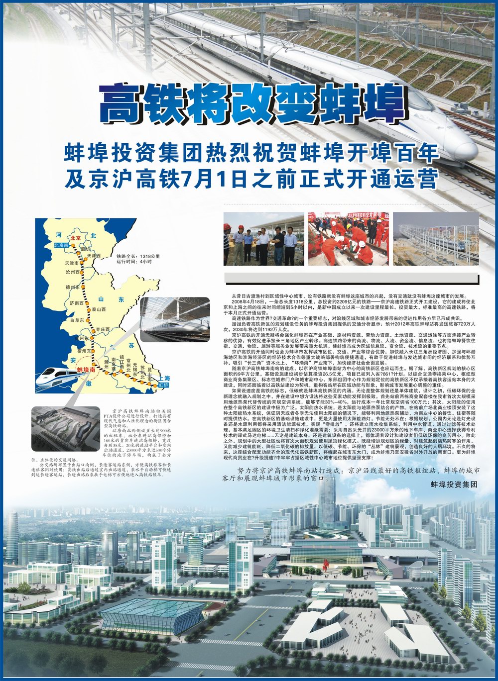 蚌投集團(tuán)熱烈祝賀蚌埠開埠百年及京滬高鐵正式開通運營