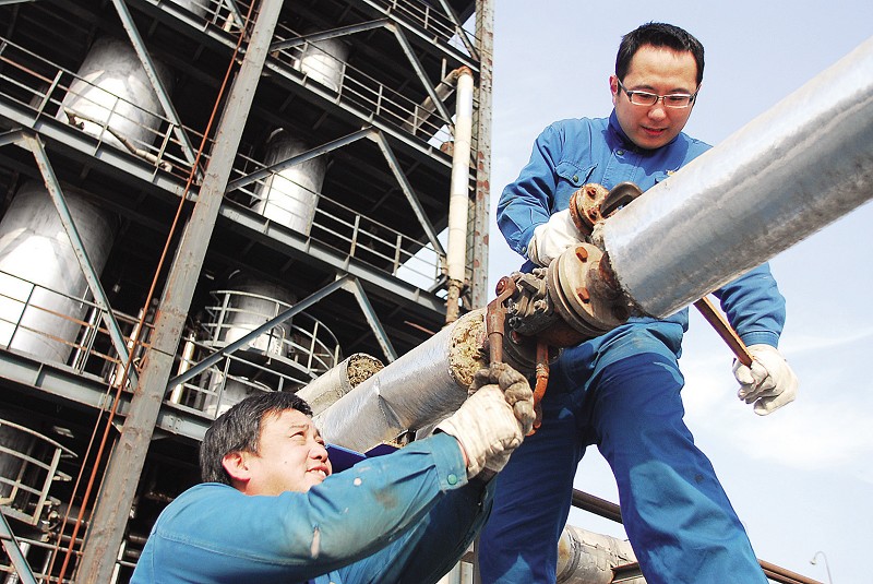 日前,安徽天潤化工股份公司兩名職工在對生產(chǎn)設備進行巡檢。春節(jié)期間,全市6萬多名干部職工放棄休息,堅守在生產(chǎn)一線,度過了一個別樣的新春佳節(jié)。