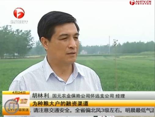 安徽電視臺經(jīng)濟(jì)頻道分別于2012年11月3日和2013年4月24日兩次對國元農(nóng)業(yè)保險(xiǎn)懷遠(yuǎn)支公司服務(wù)三農(nóng)的創(chuàng)新融資模式進(jìn)行了宣傳報(bào)道。懷遠(yuǎn)支公司積極開展政策性農(nóng)業(yè)保險(xiǎn)保單質(zhì)押貸款業(yè)務(wù),拓寬了農(nóng)村融資渠道,助推農(nóng)業(yè)規(guī)?;?、產(chǎn)業(yè)化的發(fā)展。報(bào)道展示了企業(yè)的良好形象和服務(wù)三農(nóng)取得的優(yōu)秀成績。