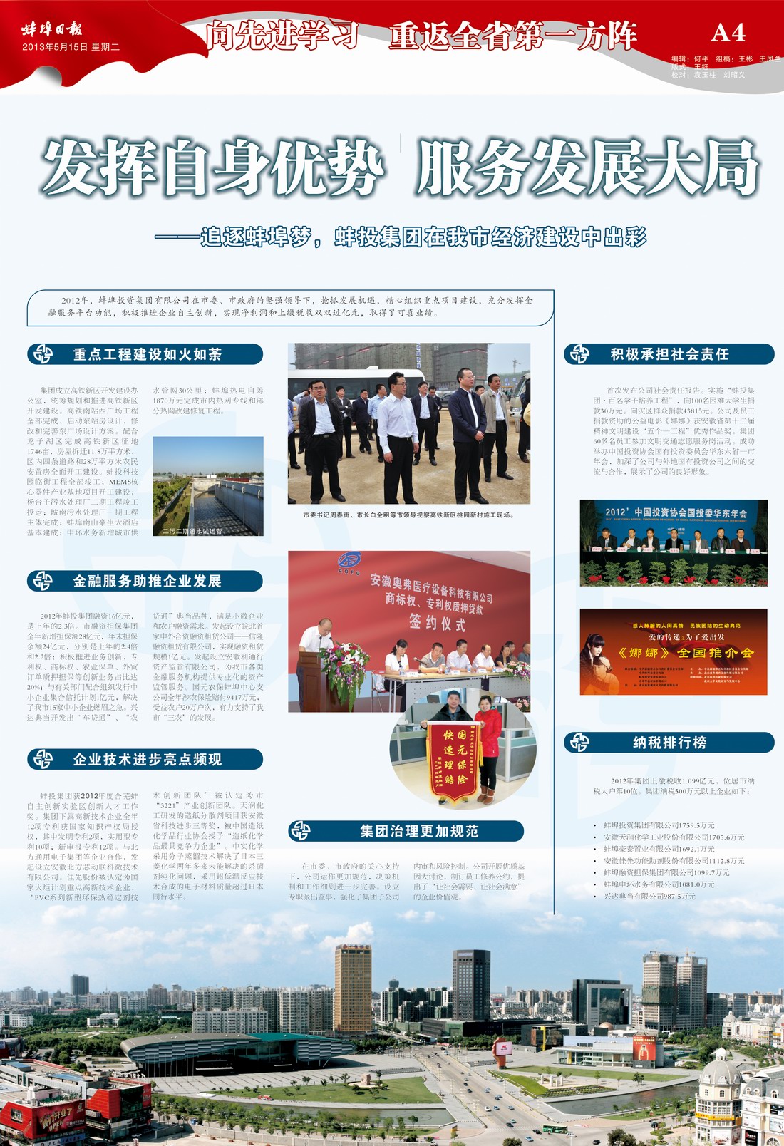 蚌投集團(tuán)在我市經(jīng)濟(jì)建設(shè)中出彩—蚌埠日?qǐng)?bào)先進(jìn)專版