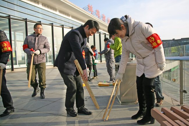 志愿者分成兩組。環(huán)境衛(wèi)生組負(fù)責(zé)擦洗護(hù)欄、清掃路面等保潔服務(wù)。文明交通服務(wù)組負(fù)責(zé)為旅客指路、文明交通勸導(dǎo)服務(wù)。通過志愿者辛勤勞動(dòng),高鐵南站廣場(chǎng)環(huán)境衛(wèi)生更加潔凈,行人車輛通行有序,高鐵南站作為我市的城市客廳更加亮麗。