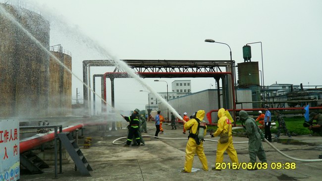 演練以天潤(rùn)公司原料儲(chǔ)罐區(qū)發(fā)生危險(xiǎn)化學(xué)品泄漏事故為背景,在應(yīng)急救援指揮部現(xiàn)場(chǎng)指揮人員指揮下,各參演小組按照各自的分工迅速進(jìn)行了區(qū)域警戒、人員疏散、火災(zāi)控制、事故處置等演練,整個(gè)演練計(jì)劃周密,各環(huán)節(jié)銜接順暢,達(dá)到了預(yù)期效果。