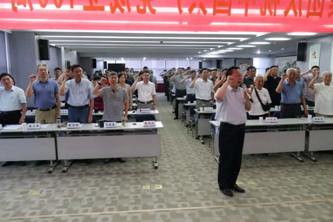 在鮮紅的黨旗下,黨員同志們莊嚴(yán)地舉起右手,重溫入黨誓詞,這是初心使命的再宣示,是接續(xù)奮斗的再出發(fā)。在激昂的樂曲中,集團(tuán)黨委班子成員為5名老黨員代表發(fā)放“光榮在黨50年”紀(jì)念章、佩戴紅花。沉甸甸的紀(jì)念章不僅僅是對老黨員的最高禮贊,更是激發(fā)集團(tuán)廣大黨員干部續(xù)寫時代新篇章的強(qiáng)大動力。隨后,陳建功為全體與會人員作了黨史專題黨課。
