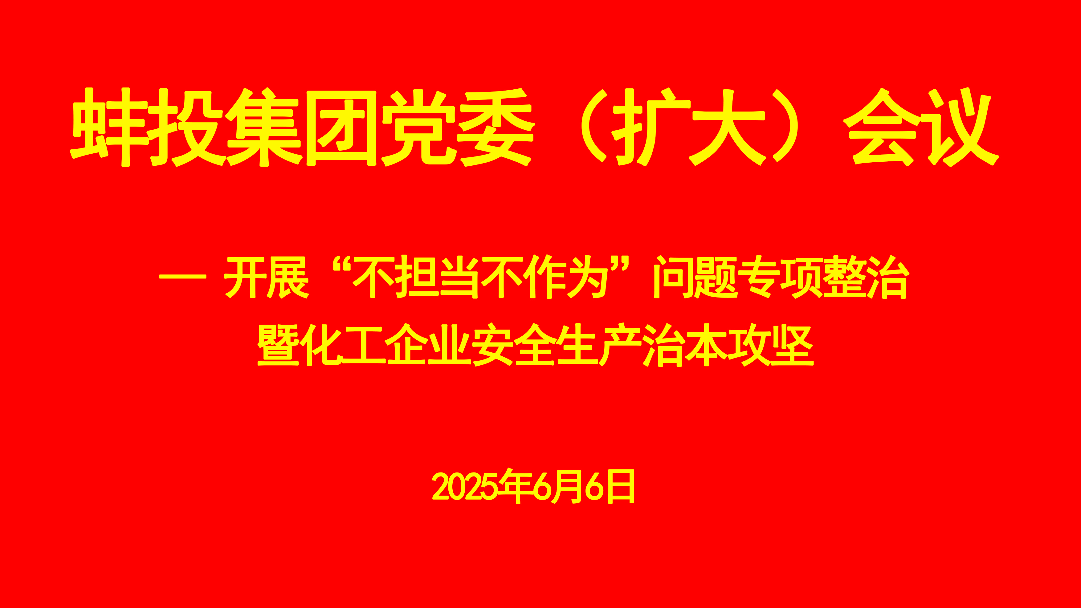 6月6日上午,蚌投集團(tuán)在淮上區(qū)沫河口工業(yè)園天潤(rùn)化工會(huì)議室召開(kāi)黨委(擴(kuò)大)會(huì)議,專(zhuān)題研究部署開(kāi)展“不擔(dān)當(dāng)不作為...